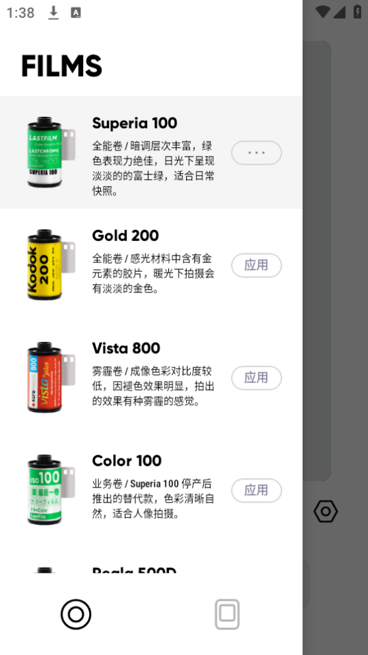 今天手机主题公园为用户推荐的是最后一卷胶片,这款app可以帮助用户解决一些个人需求,而且设计精美,最后一卷胶片中有许多胶卷相机的滤镜可以使用,会呈现出不同的拍摄效果,可以拍摄自己满意的照片,用户可以自主地进行各种风格照片的拍摄,其中许多已经停产,而且都是非常高质量的图片,用户可以快速上手使用,支持款经典胶片+款胶片框为你带来更加轻松的装扮服务,同时v2.13安装包绿色安全,用户可以放心下载。