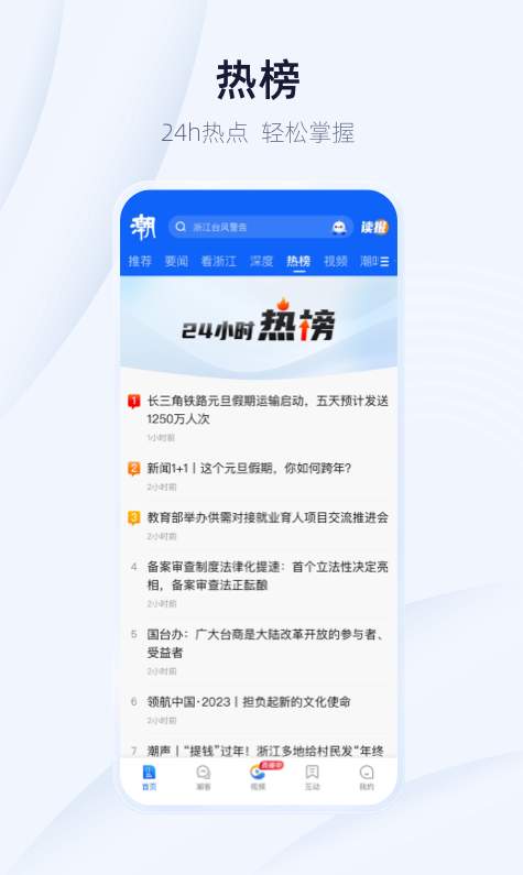 2、客户端立足浙江、联动长三角、辐射全中国,以短视频传播为特色,专注事件新闻报道、热点趋势引导、前瞻智慧交互,内容独家、独到、深度,新闻、服务、社交并重。