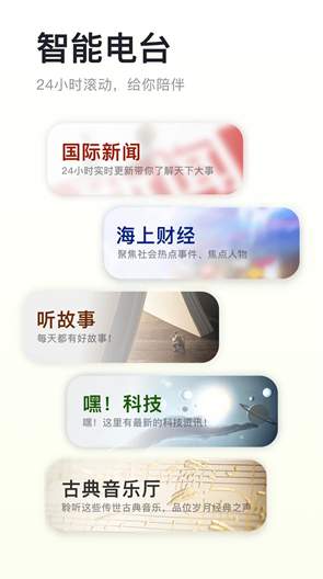 4、【最贴心陪伴】千万用户共同参与的榜单,优先展示给你最新最受欢迎的节目;不管是交通状况股票财经讨论还是健康问题,随时交流;不管是入睡前还是在路上,都可以找到你的乐子。