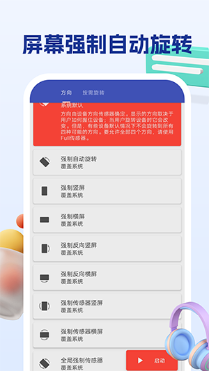 想要体验生活服务手机应用的小伙伴不妨来试试这个屏幕方向管理强制横屏,使您能够轻松地切换屏幕方向,让用户可以将手机进行随意的旋转,我们的应用解除了屏幕方向的限制,这在打开游戏软件时尤其令人烦恼,可以选择最新的操作模式进行使用,运行也更加的稳定,许多应用都限制了屏幕的方向,屏幕方向管理强制横屏的功能非常适合小伙伴,一起来下载安装一下吧!