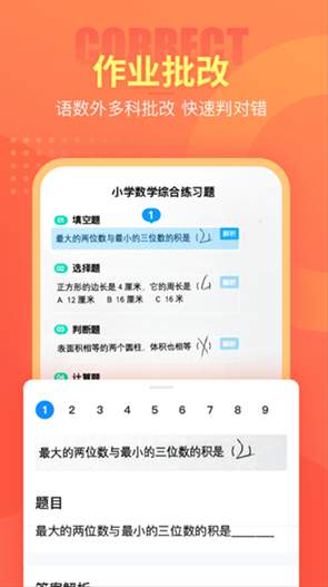 2、包括拍照检查、作业批改、优秀作文、古文助手、单词查询等工具;