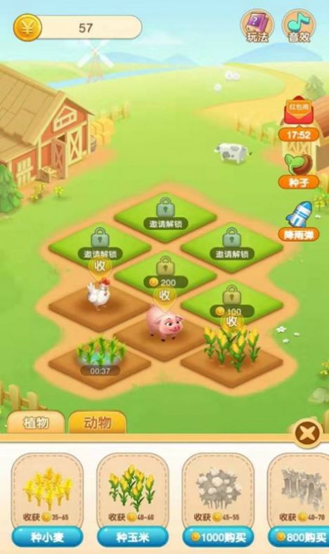 2、游戏中有多种作物和品种,玩家可以自由选择,同时游戏还有有趣的社交系统和丰富的任务系统,让游戏操作非常新颖、丰富多彩;