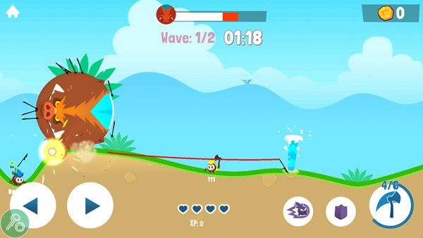 1、需要为猎人配备厉害的武器,不断升级自己的强大技能,都能够保护村庄不受到伤害。