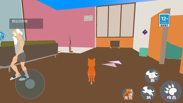 3、你可以使用攻击来推到各种物品,不停的搞破坏可以吸引人类,不停的跑酷跳跃可以让人们抓不到你。