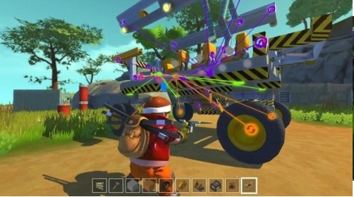 3、手里面的工具十分重要,你需要使用工具来进行建造,通过特殊的绑定系统把材料设定在一起。